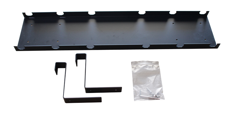 - Fix the cable tray hangers to the frame with the 2 larger screws provided