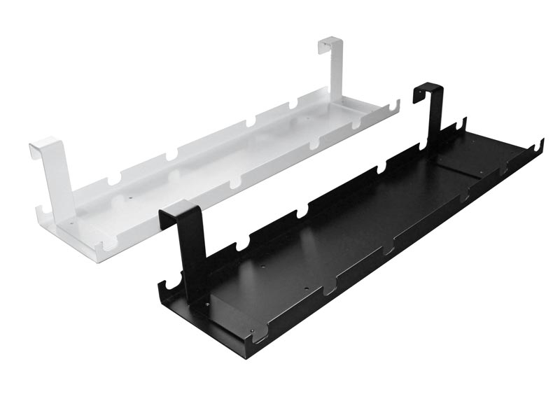 The Elevate Cable Tray is constructed from durable steel and is available in black and white.